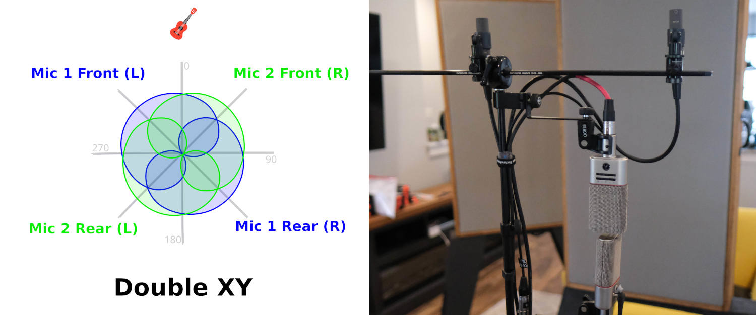 Demonstrating multiple stereo miking techniques for 360 degree recording